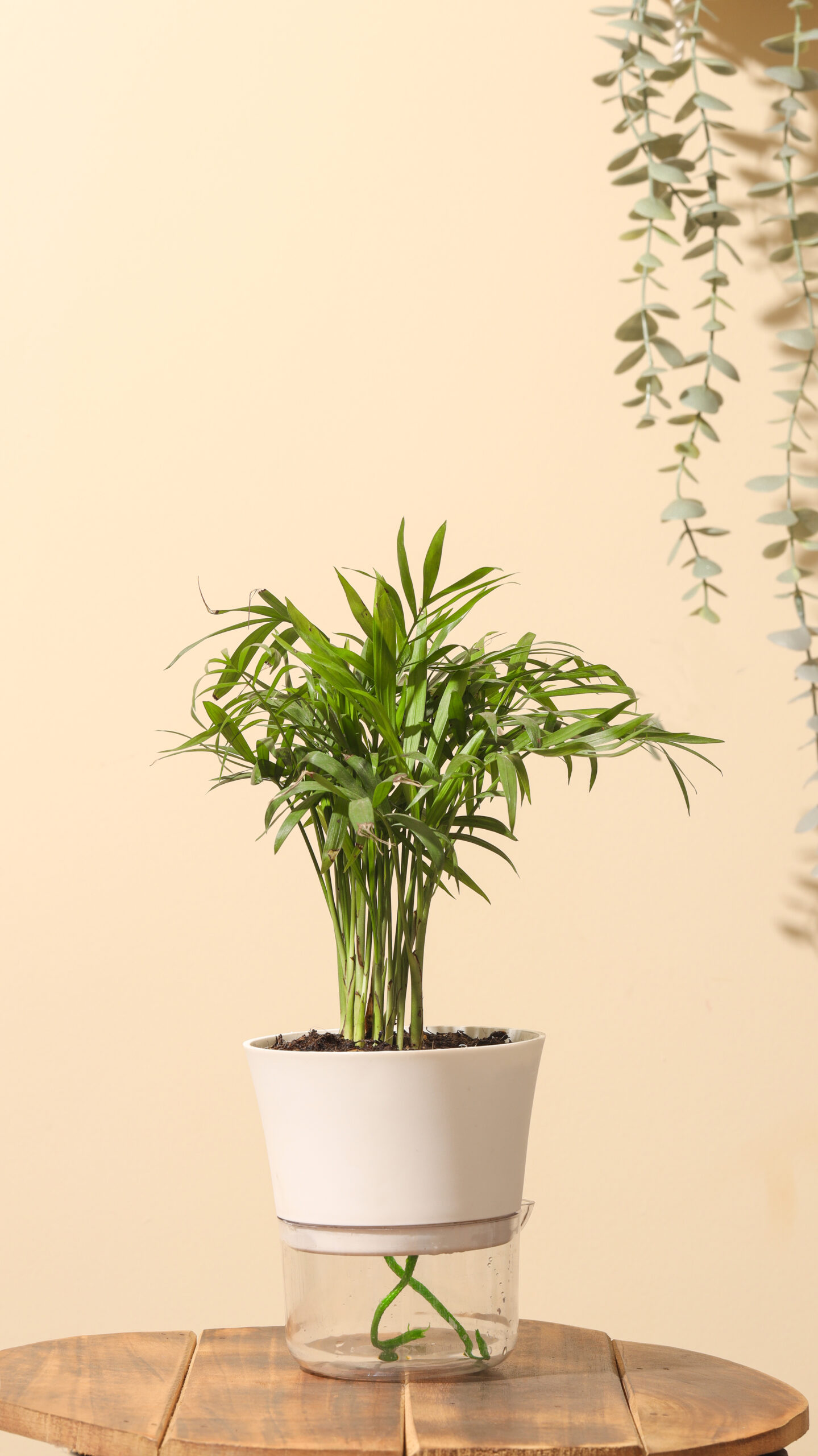 Transform your home or office into a serene green space with the Bamboo Palm (Chamaedorea Elegans), one of the most popular and low-maintenance indoor plants. This lush, compact palm comes in a stylish self-watering pot, designed to make plant care effortless, even for beginners.